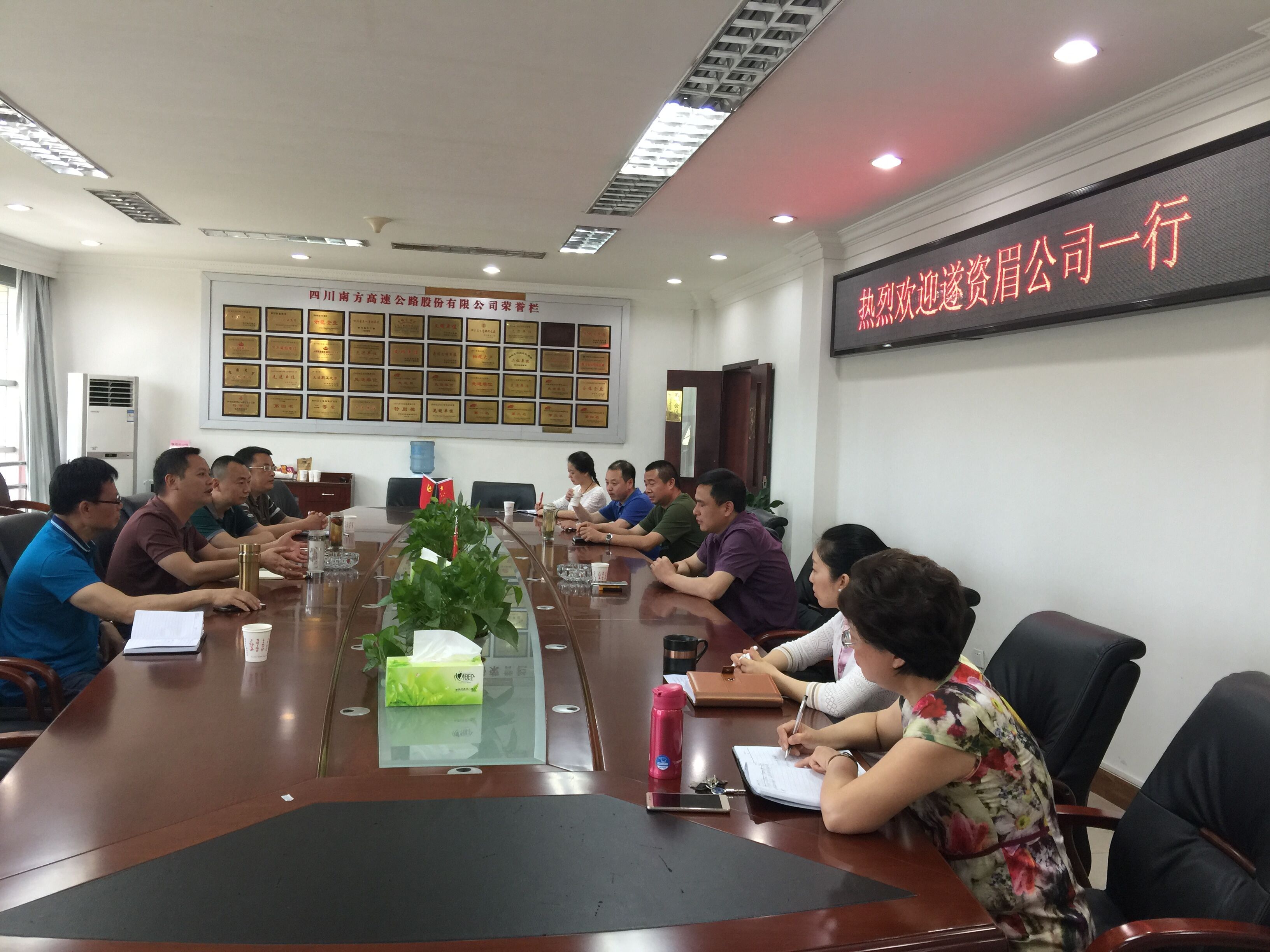 为学习借鉴省内兄弟公司先进成熟的管理模式,进一步提升营运管理服务水平,2017年5月16日上午,公司董事长赖大权在高级顾问曾玉平、副总经理舒先强的陪同下,带领公司相关职能部门赴四川南方高速公路股份有限公司开展交流学习,南方公司副总经理邹晓东、董胜勇及相关部门负责人参加了座谈。